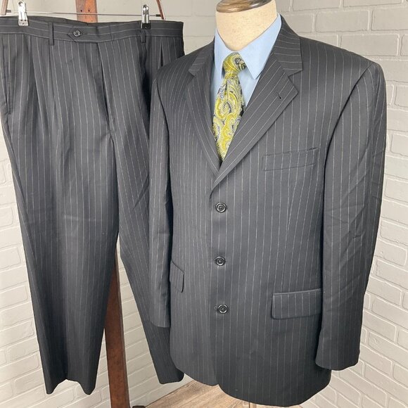 Stafford Suit Men 42R 34Wx28L Black Chalkstripe Vital Barberis Canonico VTG