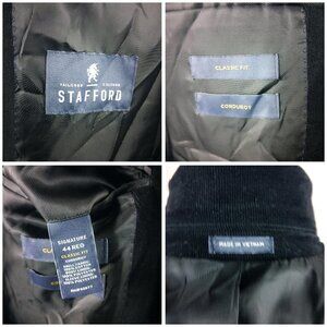 Stafford Tailored Culture Classic Fit 44R Black Corduroy Padded Elbow Sport Coat