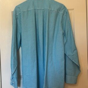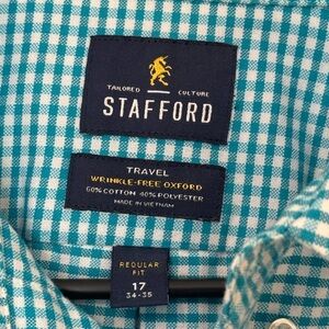 Stylish turquoise checkered shirt by Stafford. Ideal for casual outings. Comfortable and trendy.