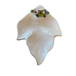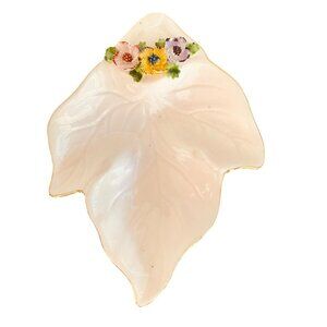 Staffordshire England Pink Trinket Dish Floral Bone China Leaf Gold Trim 5 In L