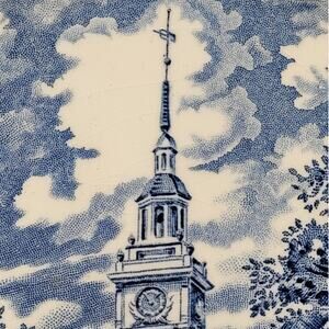 Staffordshire Vintage Liberty Blue 1776 Colonial Transferware 2 Dinner Plate 2 Independence Hall