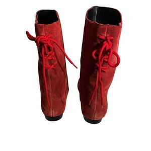 Stagelight Women’s Red Velvet Suede Slouch Boots Flat. Mid Calf. Size 7.5