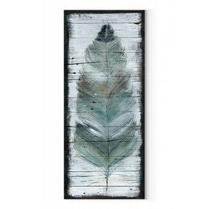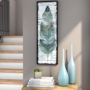 Perfect accenting a gallery-worthy display or anchoring a bare wall, this eye-catching canvas print brings a bold touch to any area. Featuring a tonal feather motif in gray and blue tones, this premium giclee print brings a neutral and earthy addition to your space, while the wood-inspired detail lets you lean into a rustic aesthetic. This painting print arrives at your home ready to hang.