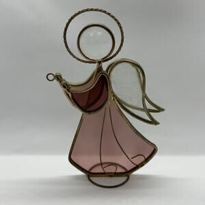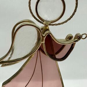 Stained Glass Angel Pink Vintage Handcrafted Stained Glass Halo Decor Suncatcher
