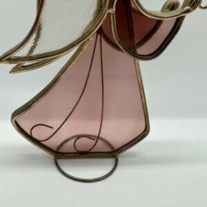 Stained Glass Standing Angel Pink Vintage Handcrafted Stained Glass Halo Decor Suncatcher Religious Worship Christian
