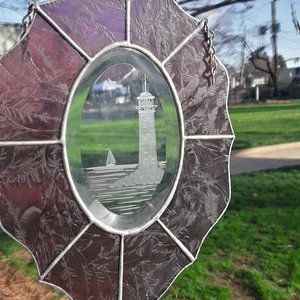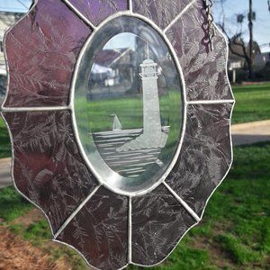 Stained Glass Etched Suncatcher Window Panel Lighthouse Bird Sailboat
