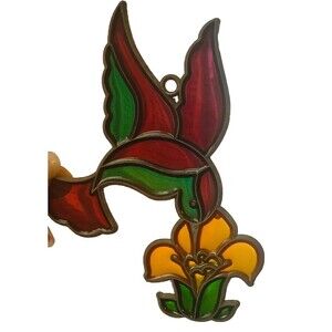 Stained Glass Humming Bird Over the Flower Hanging Bird Decoration VTG