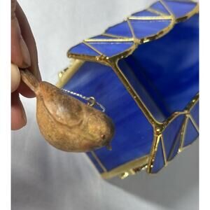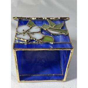 This Stained Glass Hummingbird House with Flower is a beautiful hand-painted candle holder that stands at 4 inches tall. Featuring a square shape and a floral pattern, it is suitable for all occasions and can hold votive or tealight candles. The multicolor design with birds and flowers adds a touch of country style to any room, making it a perfect decorative collectible for teens and adults alike. Handmade with stained glass and glass materials, it brings a unique and charming touch to your home decor with its wildlife-themed design.