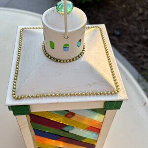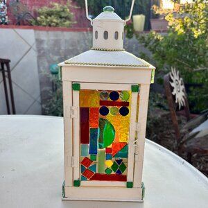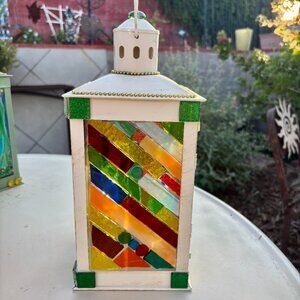 Stained Glass Lantern Handcrafted abstract mosaic One-of-a-kind lamp 5"x5"x12"