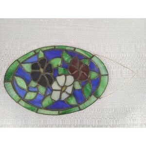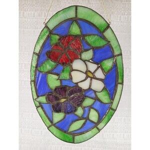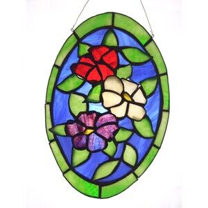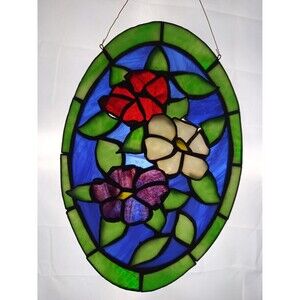 Stained Glass Panel Wall Hanging Window Decor 12x8 in Oval Art Glass Sun Catcher