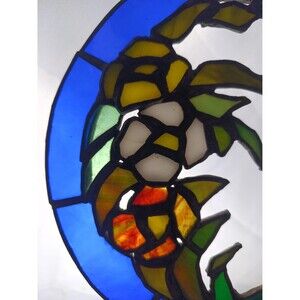 Stained Glass Panel Wall Hanging Window Decor 7 in Diam. Art Glass Sun Catcher