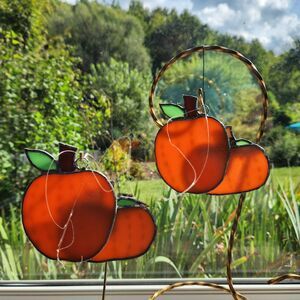Stained Glass Pumpkin Sun Catcher Jack O'Lantern Window Hanger Set 2 Halloween
