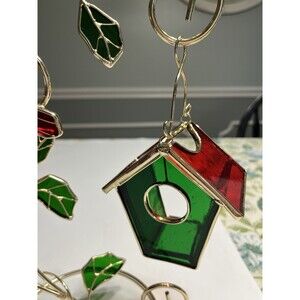 This Stained Glass Red Cardinal Holly Leaves Birdhouse Candle Holder is a beautiful holiday décor piece perfect for winter and Christmas. Standing at 12.5 inches tall, it features a multicolor design made of glass and metal. The birdhouse adds a charming touch, while the red cardinal and holly leaves details make it a festive addition to any home. This candle holder is ideal for adults looking to add a touch of seasonal flair to their living space.