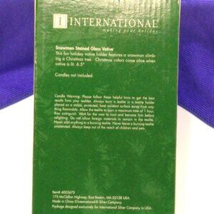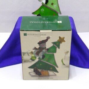 Stained Glass Snowman Climbing Christmas Tree Votive Holder Silver Plate Vintage