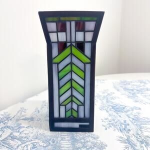 Stained Glass Style 8in Plastic Column Candle Holder Art Deco MCM