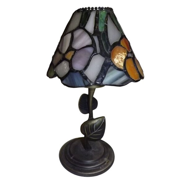 Stained Glass Tiffany Style Flower Lamp Metal Leaf Base Votive Tealight Holder