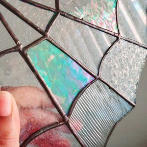 Stained glass spider web corner iridescent clear 8x8" Rustic Cottagecore…