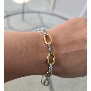 Brand new with out tags, Staineless Steel Two Tone Link Bracelet New. Beuatiful wide link, adjustable clasp closure, two tone Gold Silver detail