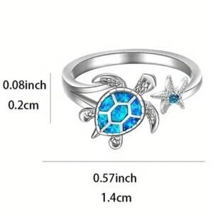 Stainless Adjustable Ring Blue Sea Turtle Starfish Ocean Christmas Birthday Gift