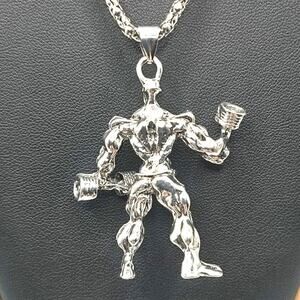 Stainless Bodybuilder Necklace Fitness Dumbbell Gym Bro Weightlifter Fashion NEW