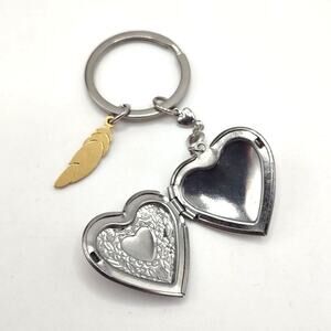 Stainless Heart Locket Keychain Vintage Feather Anniversary Birthday Gift NEW!