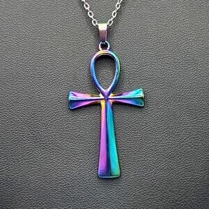 Stainless Iridescent Egyptian Ankh Necklace African Black History Birthday Gift