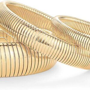 Stainless Steel 14K Gold Plated Waterproof Flexible Stretch Chunky Bangle for Wo