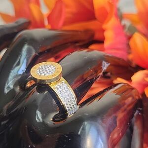 Stainless Steel 14K Gold Plated Numerals Inlaid Lab Diamond Luxury Ring Size 7