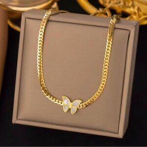 Elegant stainless steel 18k white gold plated necklace featuring a delicate butterfly pendant. Ideal for adding a touch of sophistication to any outfit. Comes in a luxurious gold color and universal size.