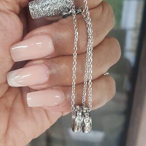Stainless Steel 2 Eternity Rings Charm Statement Wedding Party Pendant Necklace