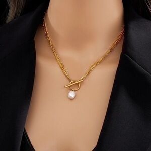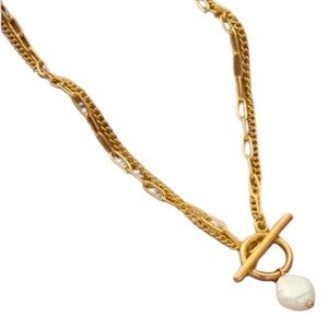 Stainless Steel Artificial Pearls 18K Gold Plated Layered Necklace