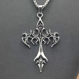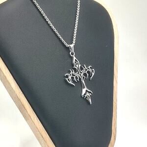 Stainless Steel Biker Style Cross Necklace Christian Valentines Birthday Gift
