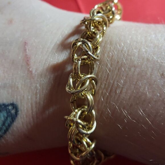 Stainless Steel Byzantine Weave Chainmail Bracelet 8" Goldtone