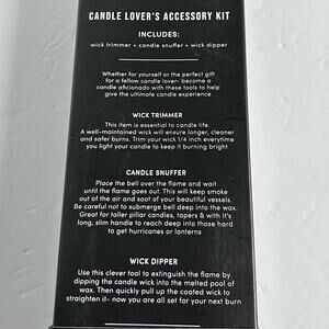 High-quality gift set of three candle-keeping instruments, including a wick trimmer, wick dipper, and candle snuffer. Great for your own home or gift-giving!