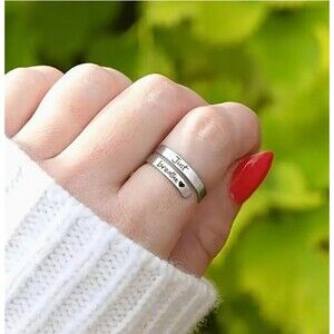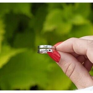 Stainless Steel Carved JUST BREATH Heart Adjustable Ring
