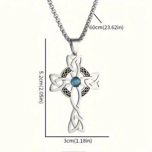 Stainless Steel Celtic Knot Cross Pendant Necklace Synthetic Blue Zircon…