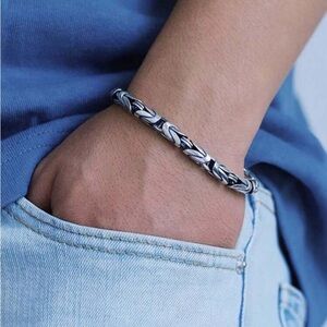 Stainless steel Men’s domineering Cuban chain link hipster punk bracelet. Measures 22cm, 8.66”.