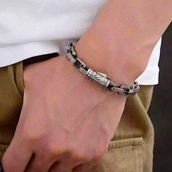 Stainless steel Men’s domineering Cuban chain link hipster punk bracelet. Measures 22cm, 8.66”.