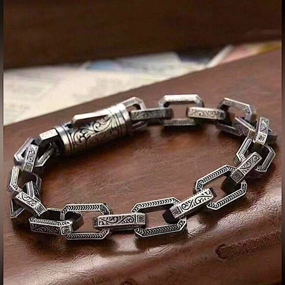 Stainless Steel Chain Link Bracelet, Mantra, Curb Hand Woven Engraved