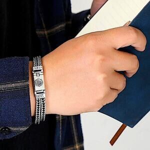 Stainless Steel Chain Link Bracelet, Mantra, Curb Hand Woven Fashion Jewelry