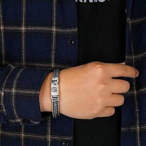 Sterling Silver plated Men’s domineering Cuban chain link hipster punk bracelet. Measures 22cm, 8.66”.