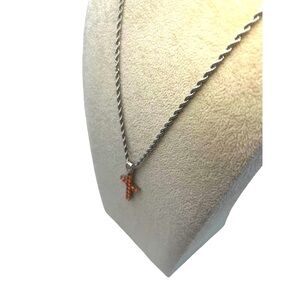 Stainless Steel Chain Necklace With Orange Rhinestone Cross Pendant. A83