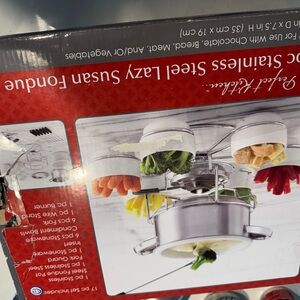 Enhance your kitchen with this durable stainless steel cookware set. Perfect for all your cooking needs. Fondue set! Missing 4 forks