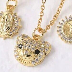 Stainless Steel Copper Zircon 18K Gold Plated Hollow Out Inlay Pendant Necklace