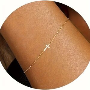 Stainless Steel Cross Bracelet Gold Adjustable Chain Religious Classic Everyday
