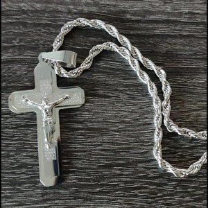 NWOT Stainless Steel Cross Pendant Pendant measures 2in Chain measures 24in Shipped fast 10% of the proceeds will go towards helping local first responders, women's shelters, animal shelters and other organizations.