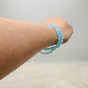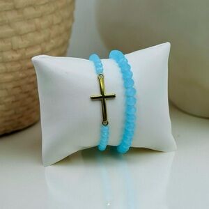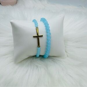 Stainless Steel Cross beaded Bracelet -Sky Blue