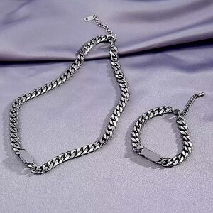 Stainless Steel Cuban Chain Link Bracelet Bar