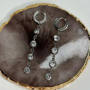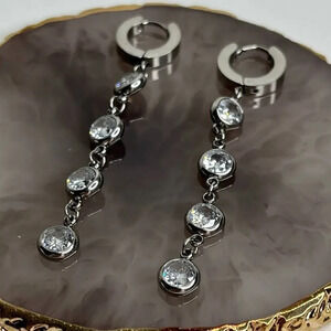 Stainless Steel Cubic Zircona Tassel Earrings