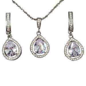 Silver, stainless steel, tear drop, cubic zirconia earrings and adjustable necklace set.